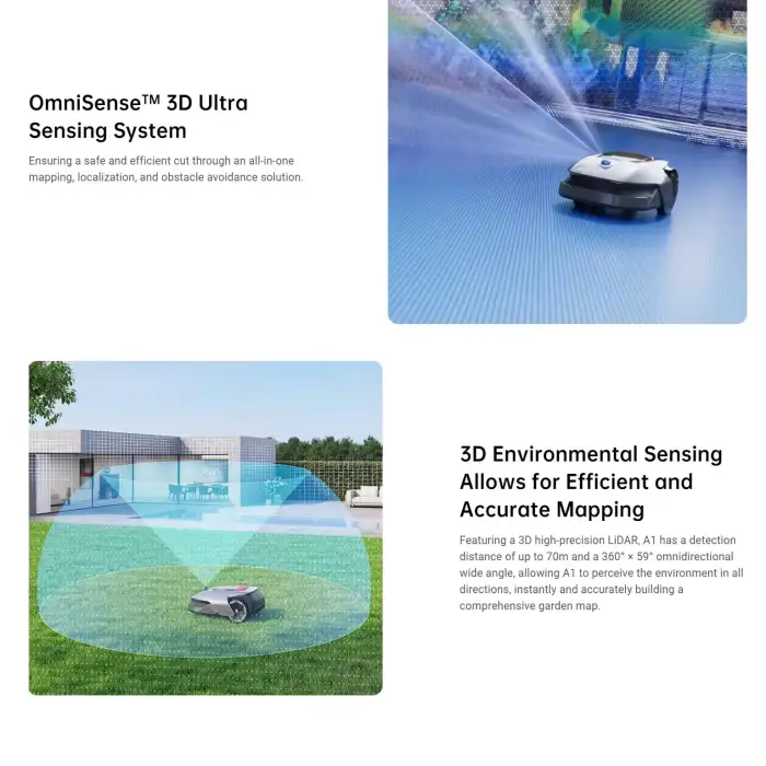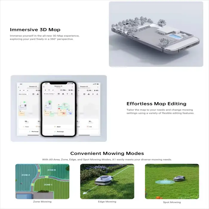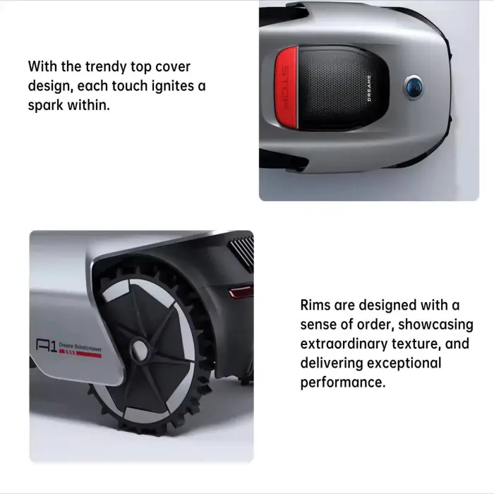 The Dreame Cropper includes safety features such as a blade guard and an automatic shut-off feature if the mower is lifted during operation.
