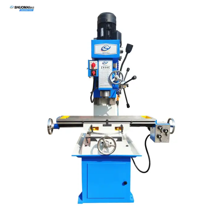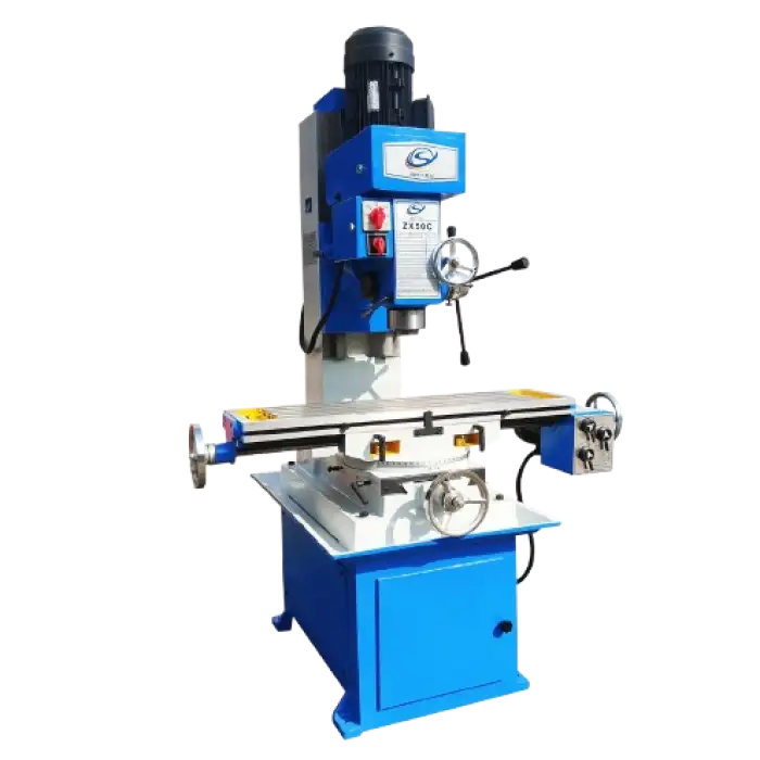 The ZX50C Milling Machine is designed for metalworking tasks, including drilling and milling operations, making it ideal for metal fabrication workshops, prototyping, small batch production, and educational settings.