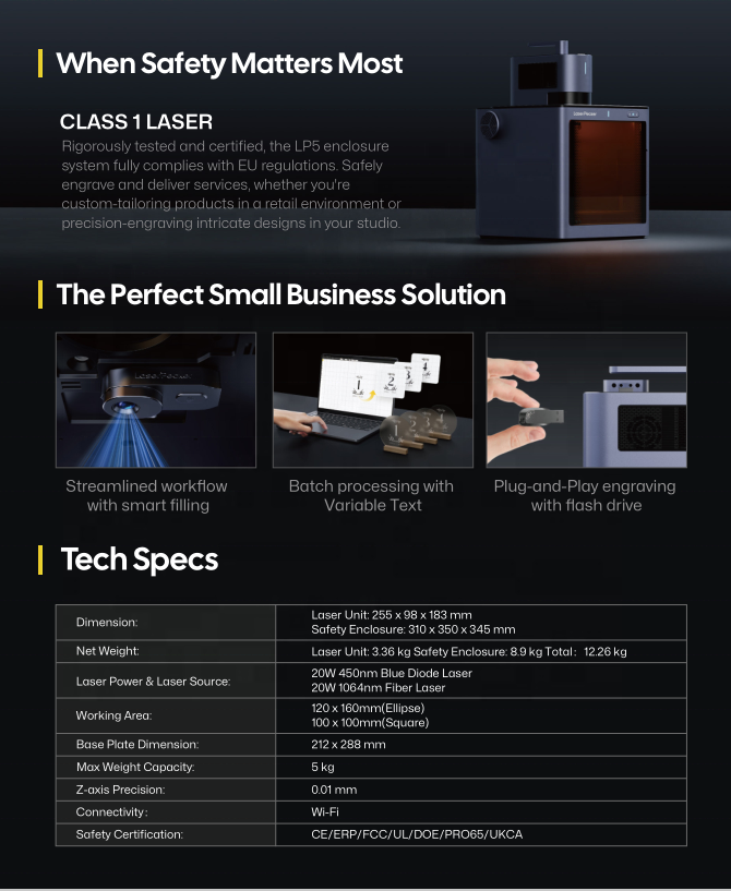 The LaserPecker LP5 is the perfect tool for anyone looking to create high-quality engravings with ease and precision. Its advanced features make it suitable for both hobbyists and professionals alike. Get started with your engraving projects today!