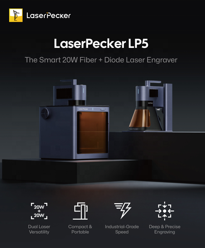 The LaserPecker LP5 is a powerful and versatile laser engraving machine. It features both diode and fiber laser technology, providing exceptional precision and speed. Whether you're engraving on wood, metal, glass, or plastic, this machine can handle it all with ease. Its compact design makes it perfect for any workspace, allowing you to create deep and detailed engravings quickly and efficiently.