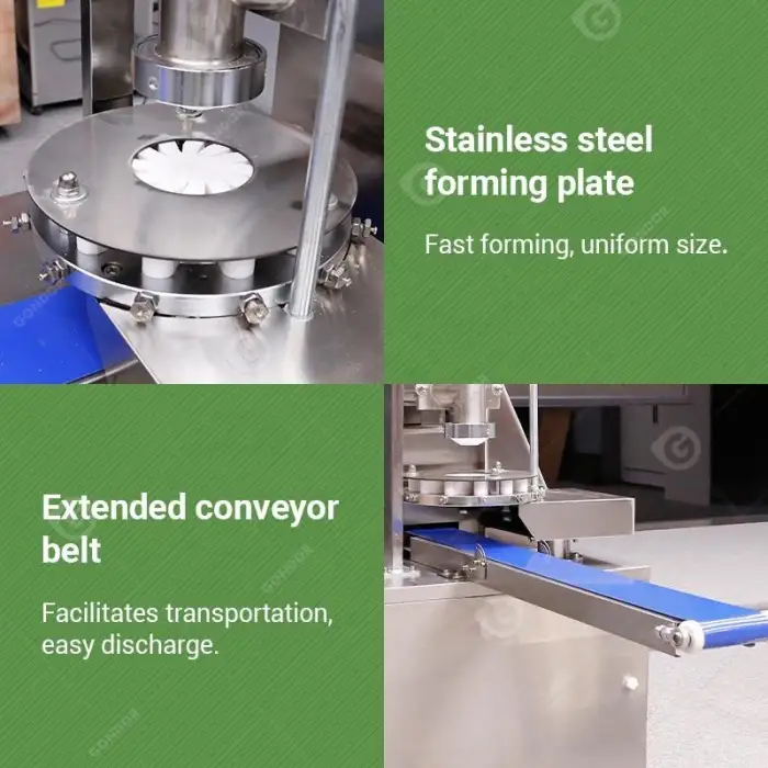 The Dumpling Maker has a large-capacity hopper, allowing for less frequent discharging and improved efficiency.