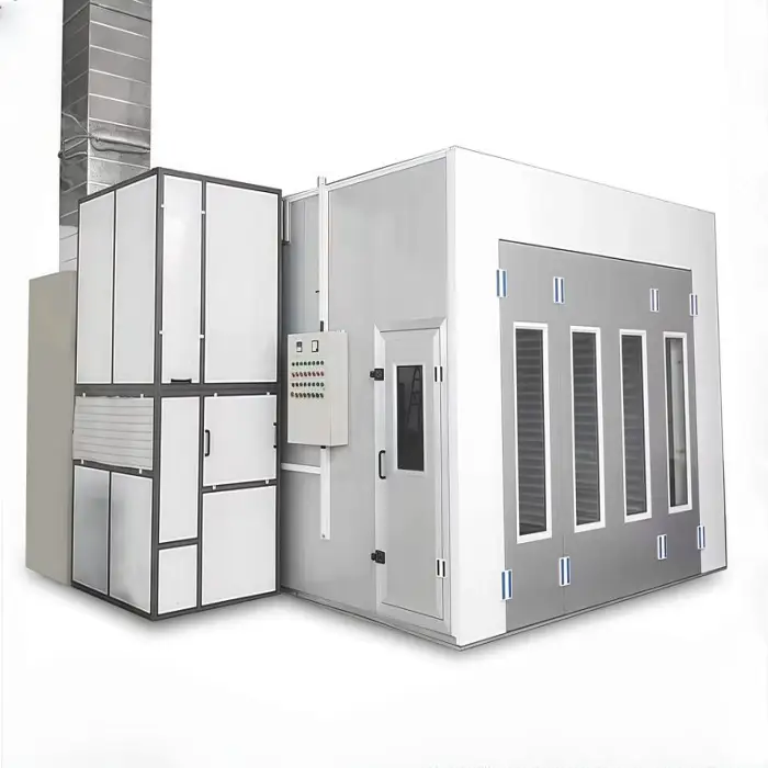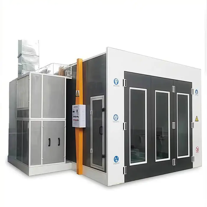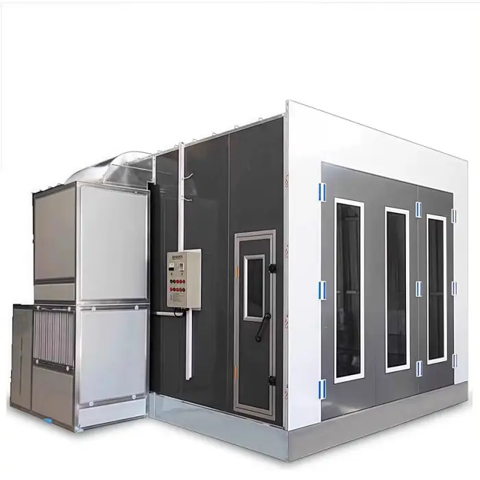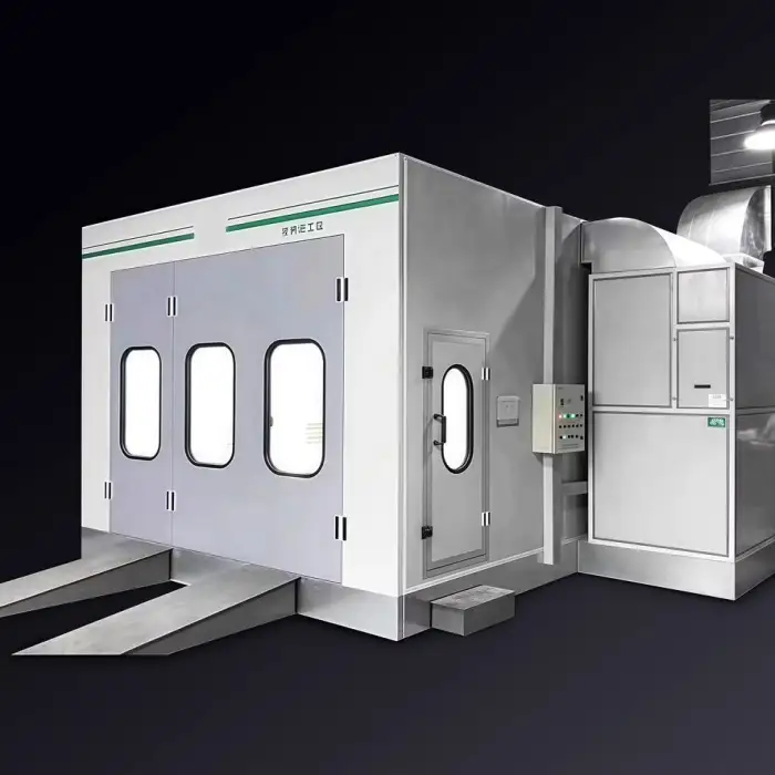 The spray booth features a powerful infrared heating system for quick drying, but specific details should be confirmed with customer service.