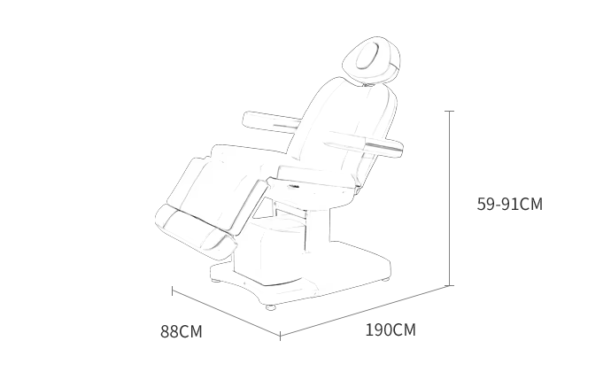 The dimensions of the Electric Facial Bed are 190 x 88 x 59-91 cm.