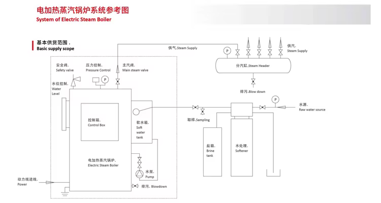 The Electric Heated Steam Generator is designed to produce low-pressure steam for various industrial applications such as food processing, textile manufacturing, and cleaning.