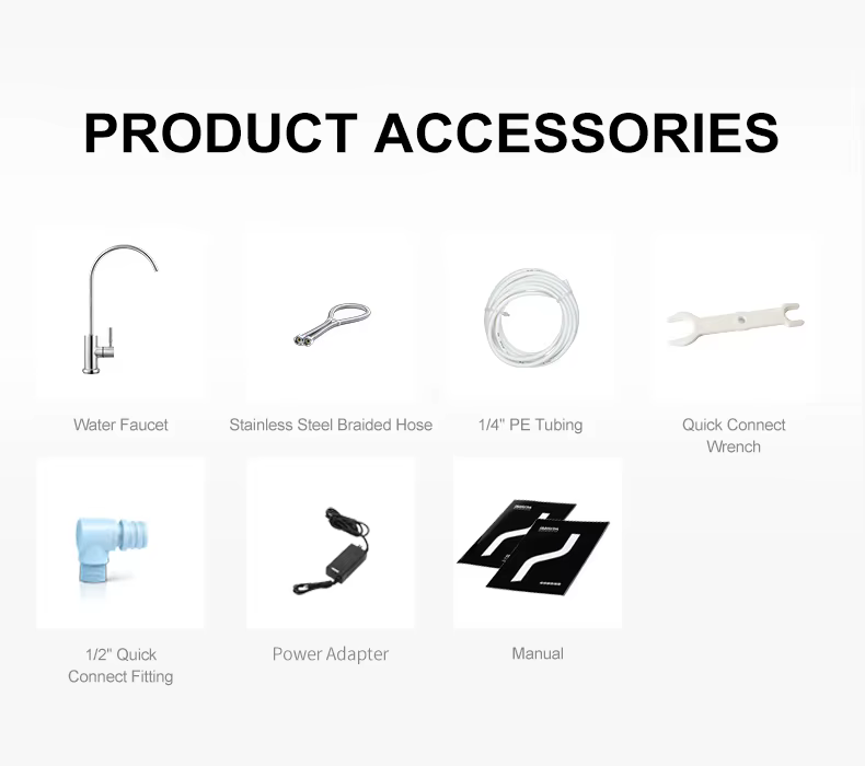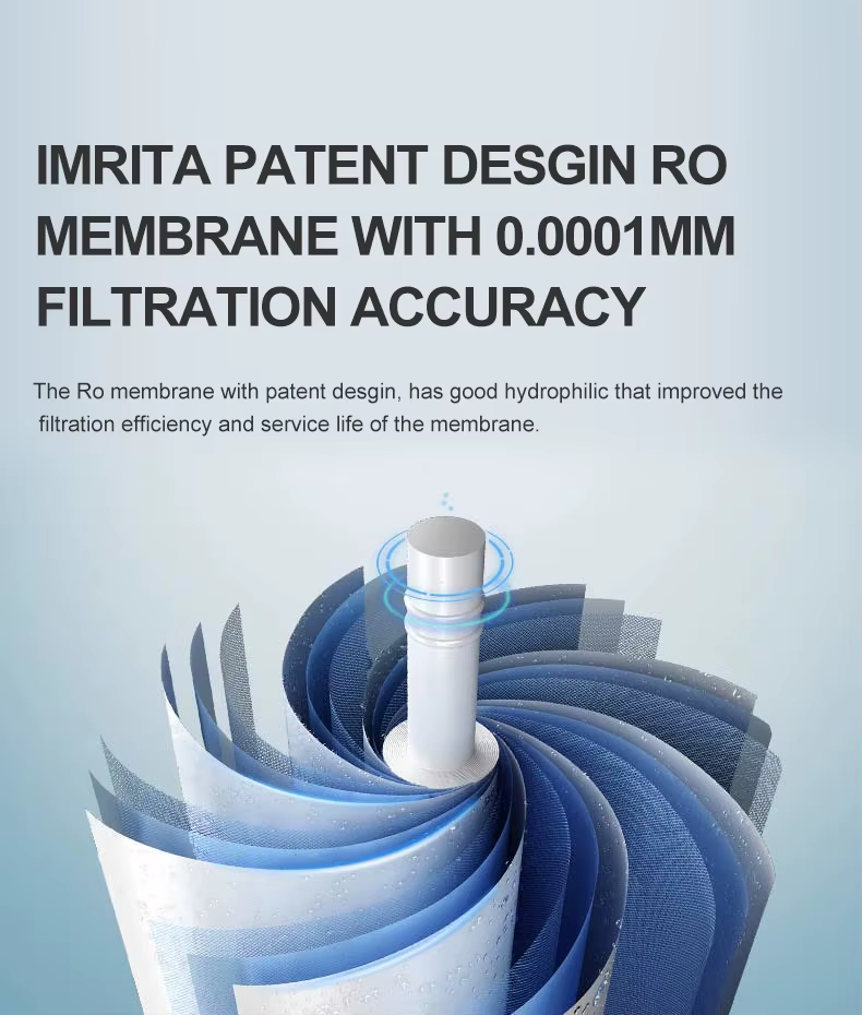 The filtration accuracy of this water purifier is 0.0001μm, effectively removing impurities and contaminants for pure drinking water.