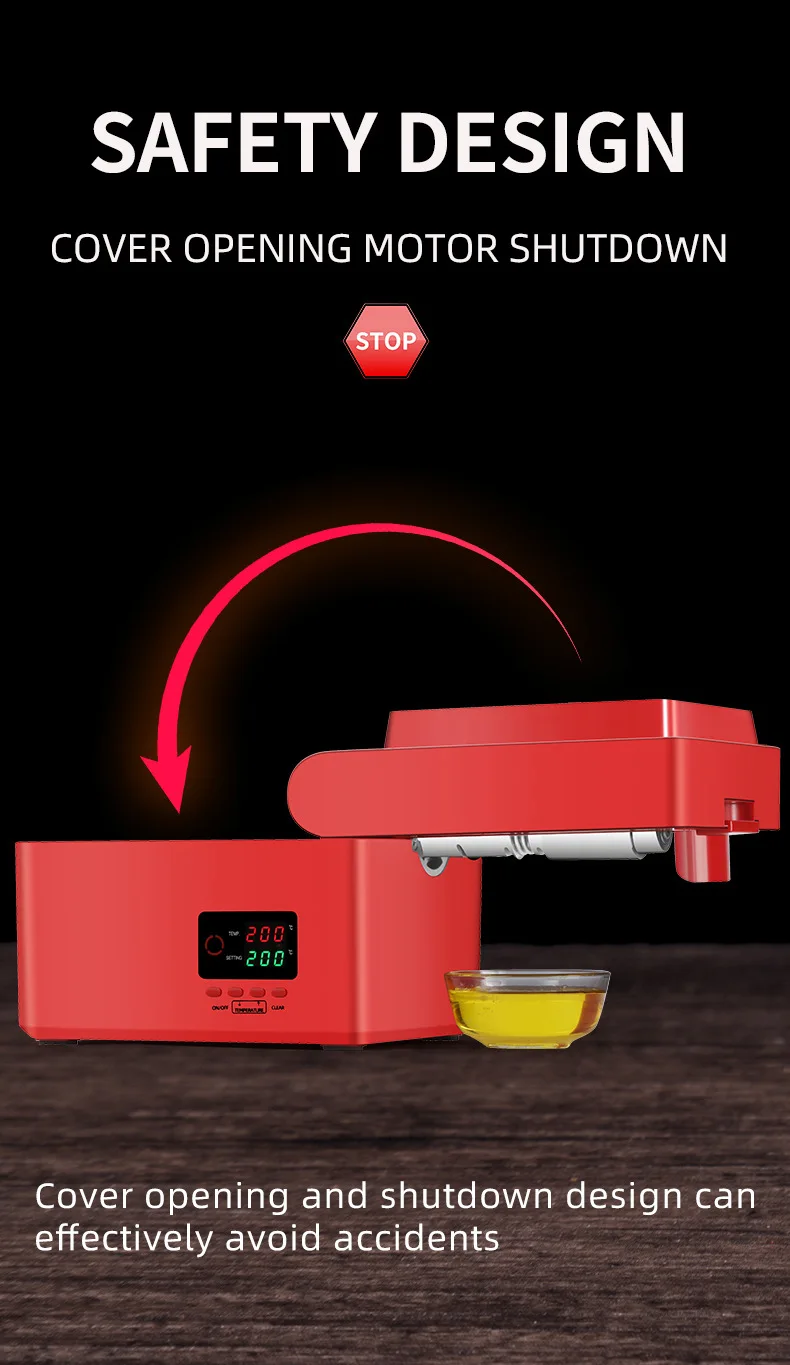 The machine is made from durable materials designed for long-lasting performance, ensuring efficient oil extraction for repeated use.