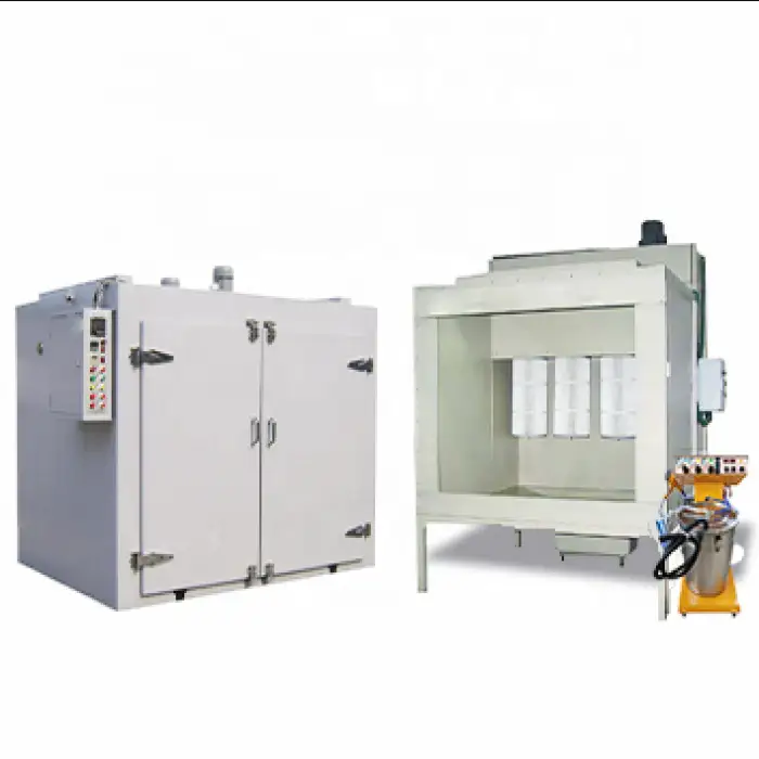 The booth is designed for efficient surface treatment of metal parts, specifically for powder coating applications.