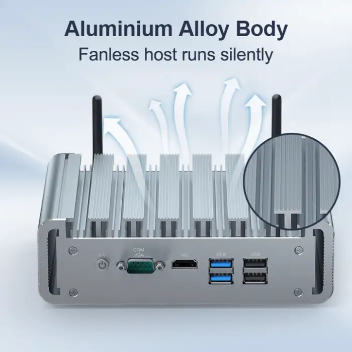 This mini PC is powered by the Intel Celeron J4125 processor, which offers efficient processing capabilities for network tasks.