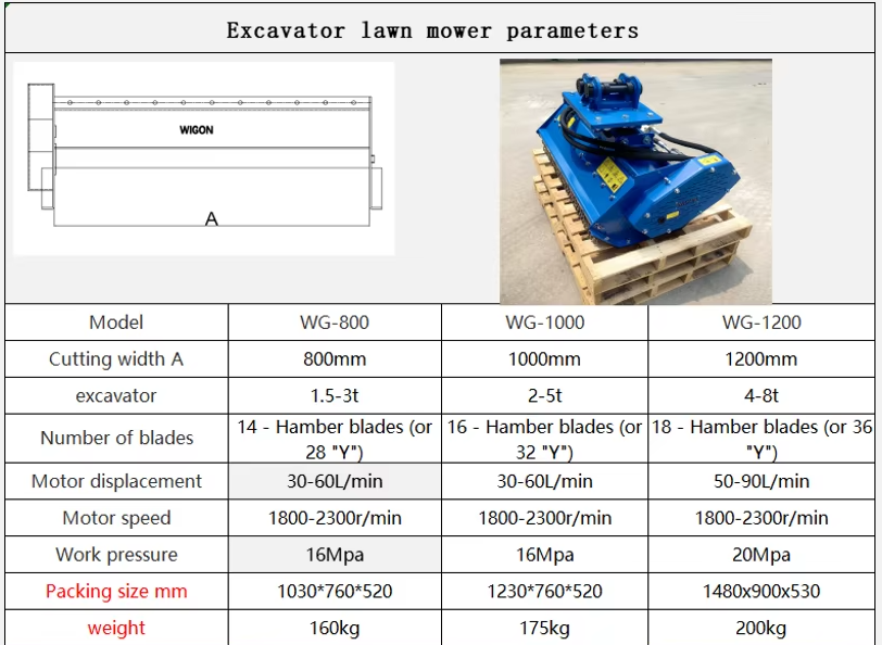 The Excavator Lawn Mower - Model WG-1000 is designed for efficient lawn mowing, particularly in rugged or uneven terrain. Its robust design allows it to tackle tough grass and weeds.