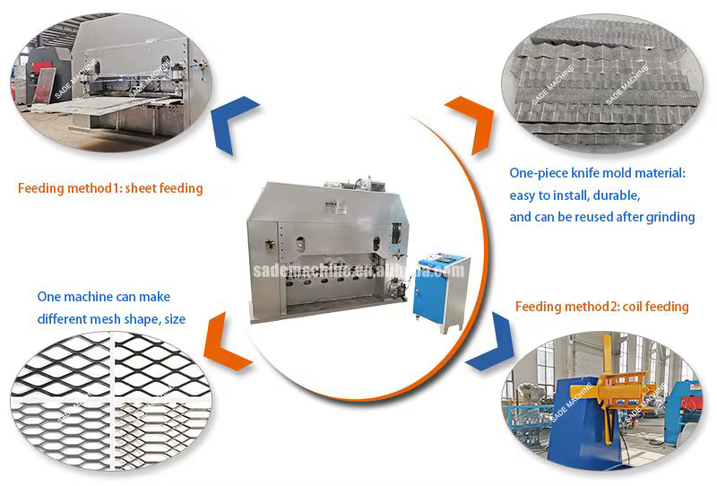 The machine is designed to create aluminum perforated metal panels and wire mesh, suitable for various construction and fencing applications.