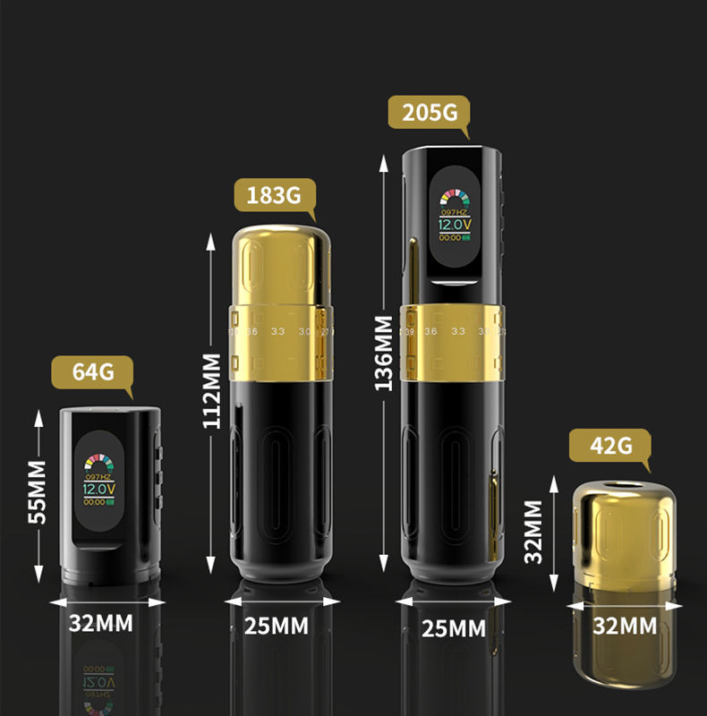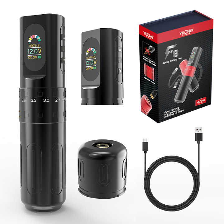 The F8 Adjustable Stroke Battery Wireless Rechargeable Tattoo Machines are perfect for professional tattoo artists. This set includes two powerful battery packs to keep you working without interruption. With an adjustable stroke length, you can customize your tattooing experience to achieve the best results every time. Enjoy low noise operation and top-quality performance with this sleek and lightweight tattoo pen machine.