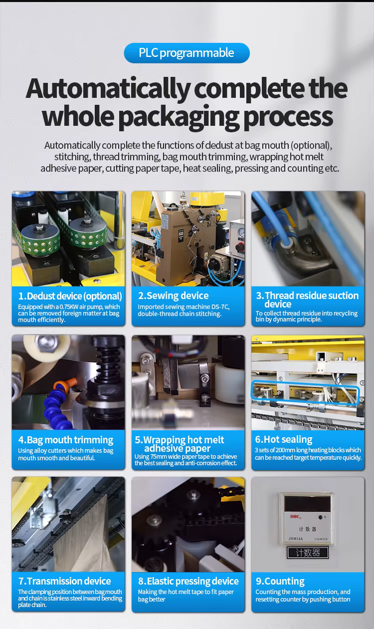 FBK-13DC Automatic Multi-layer Paper Bags Continuous Sewing Bag Closing Sealing Packing Machine