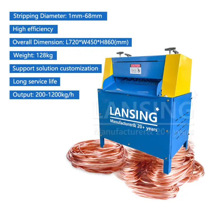 The machine can strip wires with diameters ranging from 1mm to 68mm.