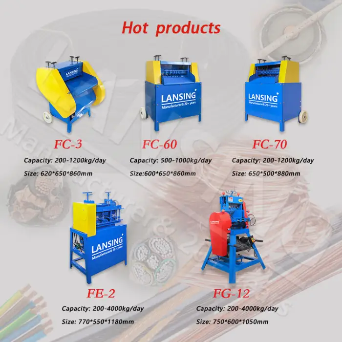 The FC-70 Industrial Wire Stripper can process between 200 to 1200 kg of wire per day.