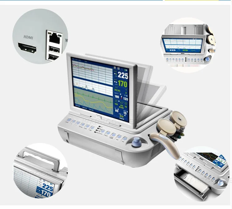 The Fetal Doppler features a 12.1-inch TFT color screen that can be folded at a 90-degree angle for ease of use.