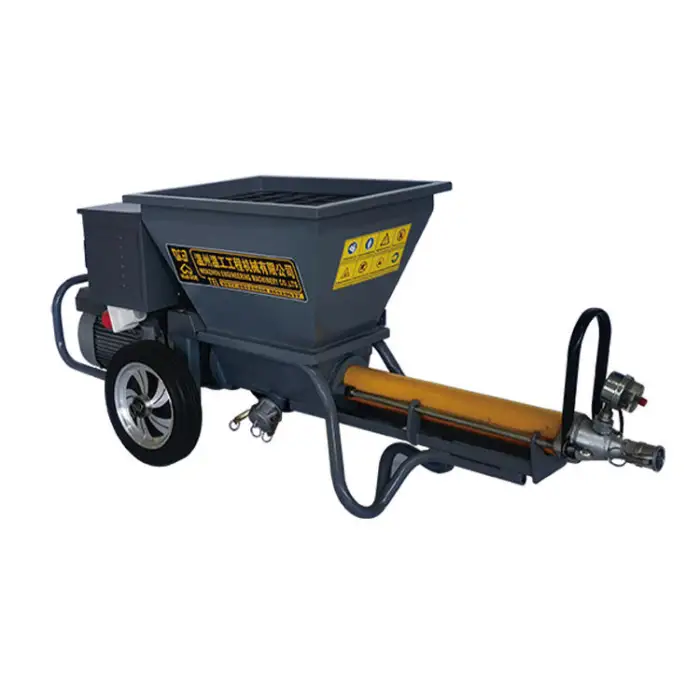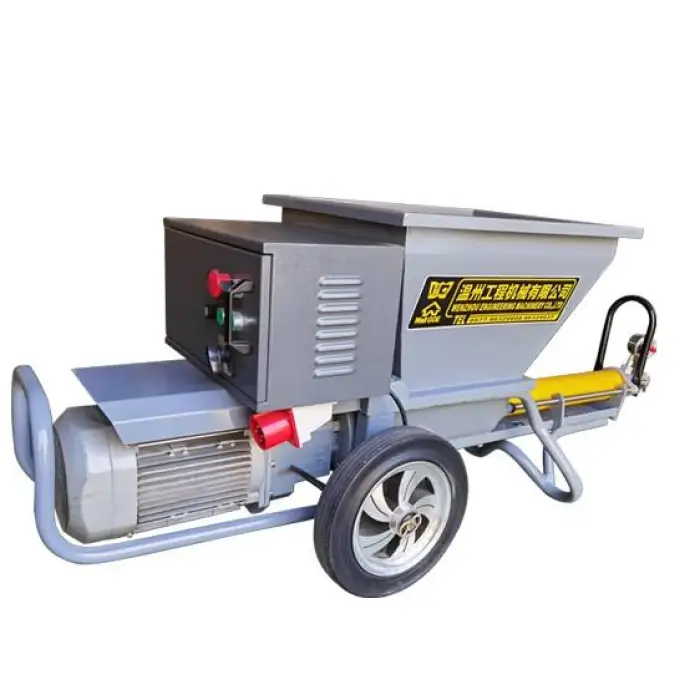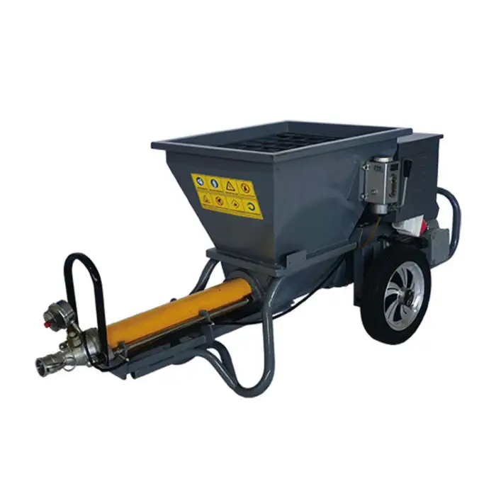 The machine is designed to spray a variety of materials, including putty, cement, mortar, and plaster.