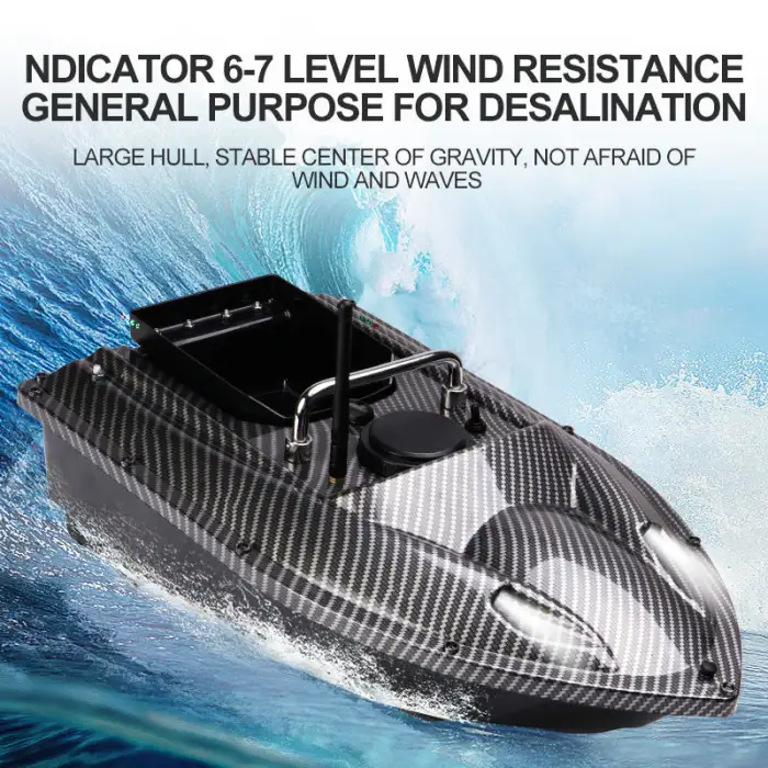The FISHGANG bait boat is available in camouflage green and carbon fiber colors.
