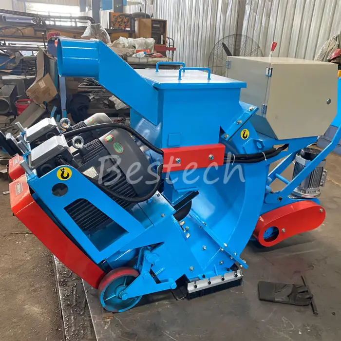 The Floor Shot Blasting Machine operates with powerful 11KW x 2 motors for efficient cleaning.