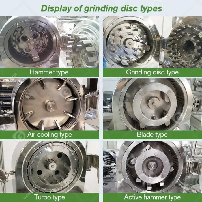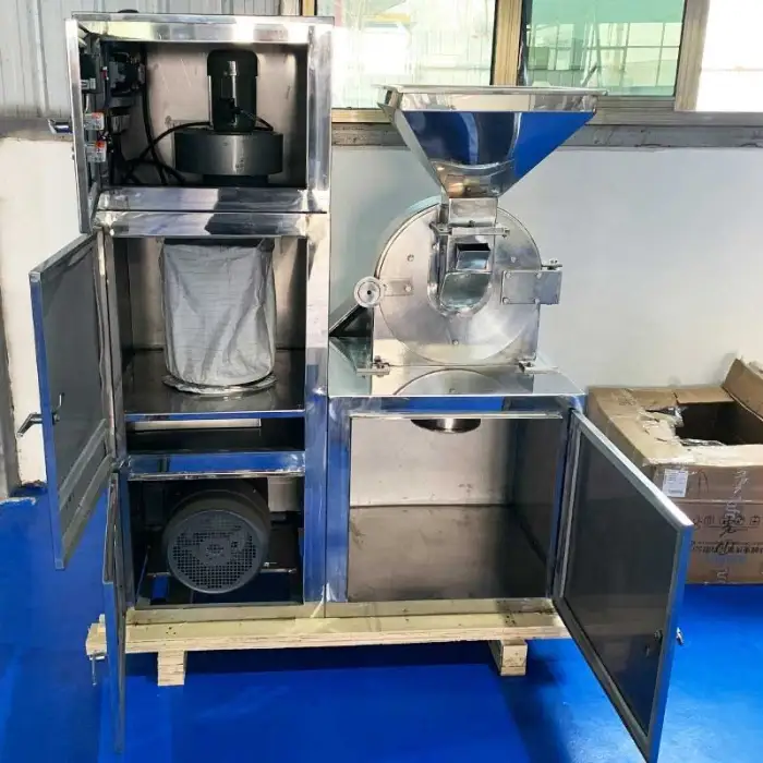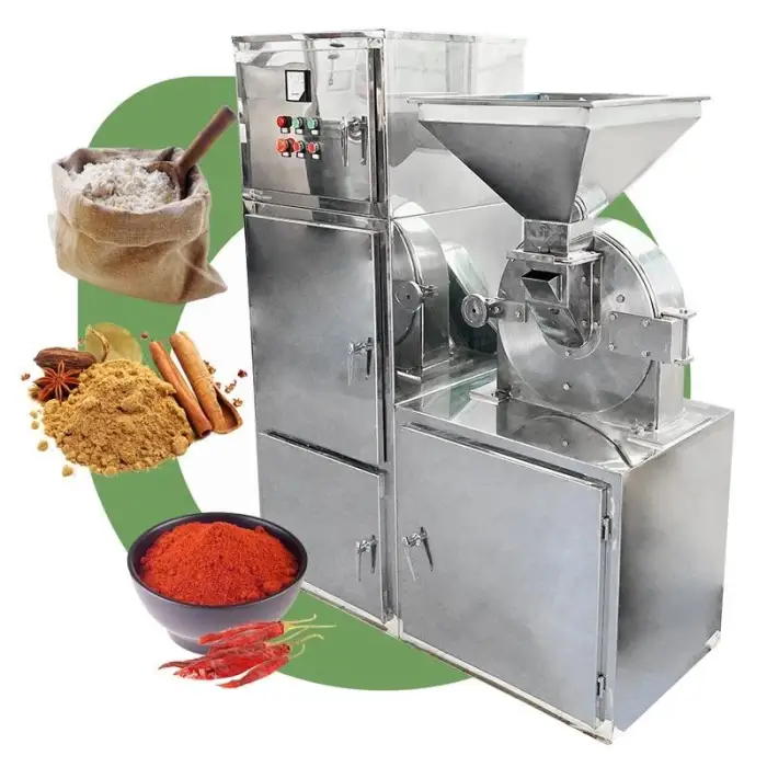 The pulverizer can efficiently grind a variety of raw materials including chili, spices, ginger, tea, cocoa beans, sesame, nuts, and peanuts.