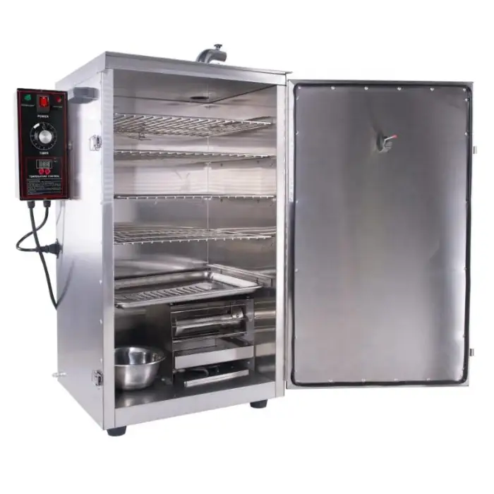 The Food Grade Stainless Charcoal Smoked Sausage Curing Fish Making Smoker is made from high-quality, food-grade stainless steel that ensures durability and safety for food preparation.