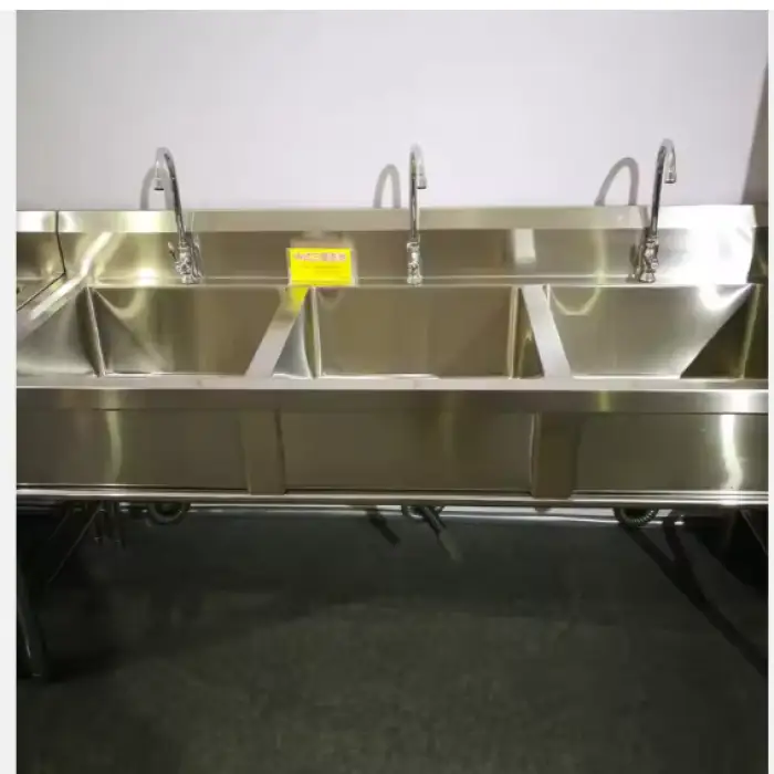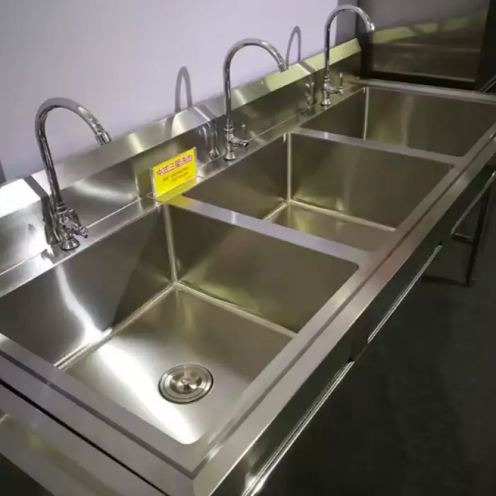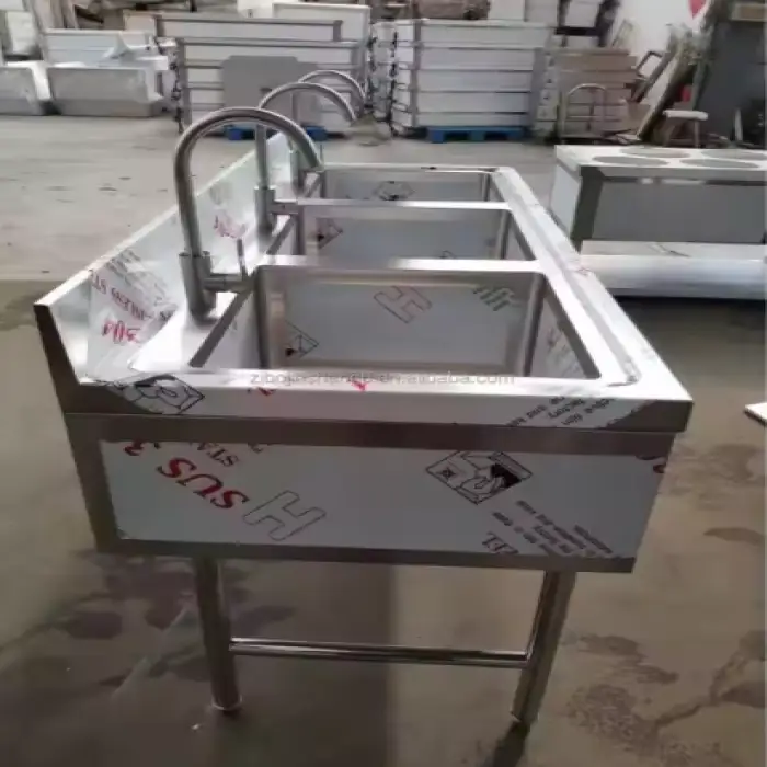 The Freestanding 201 Stainless Steel Commercial Restaurant Three Compartment Kitchen Sink is made of durable stainless steel 201/304.