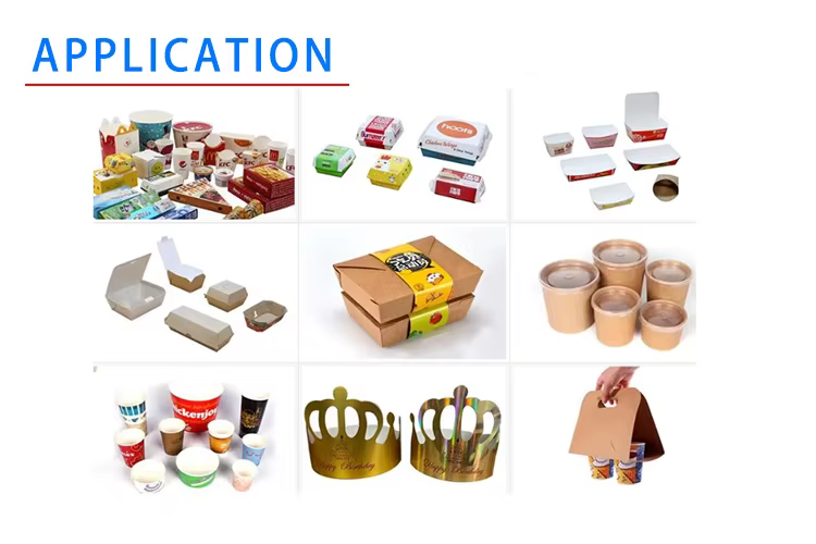 This machine is suitable for 100-600g/m2 white cardboard, PE coated paper, Kraft paper, and any material that can be rolled.