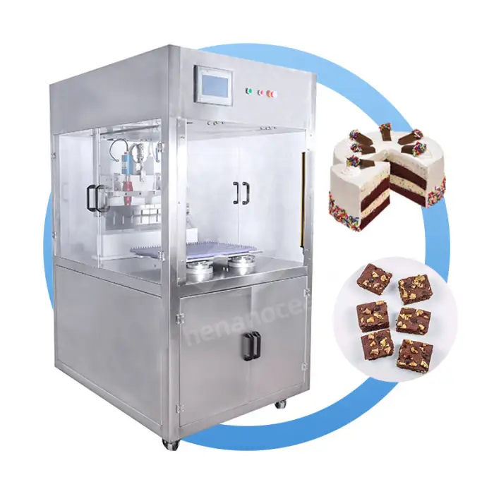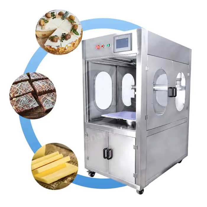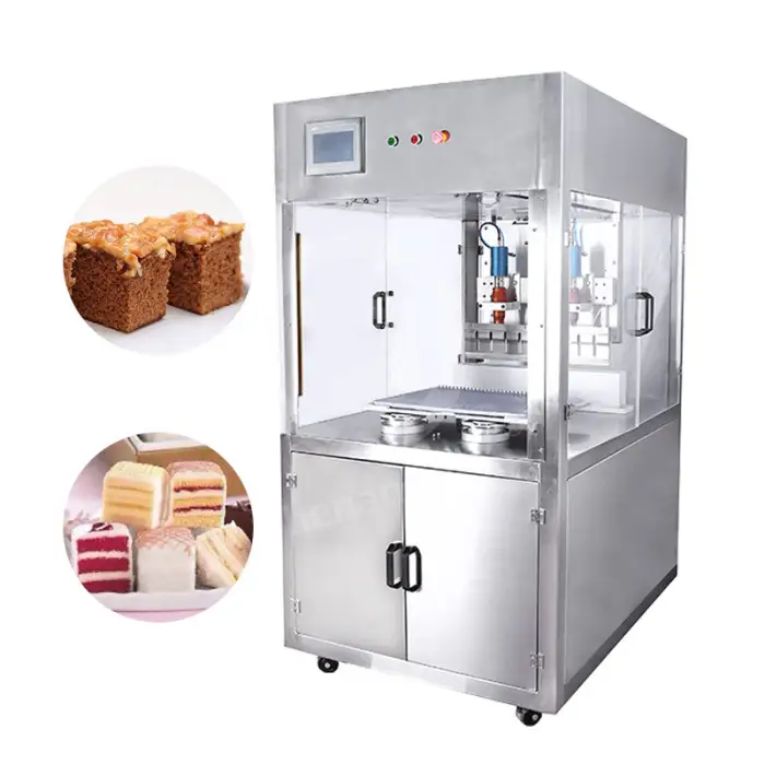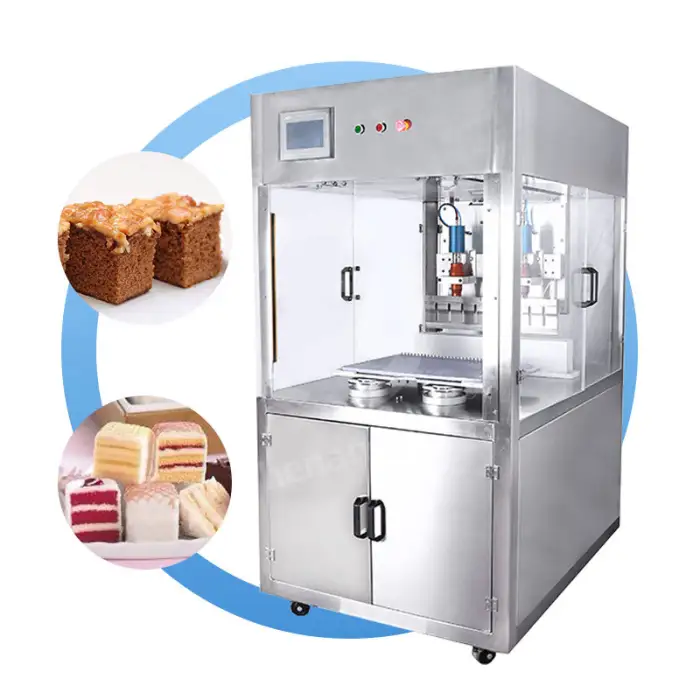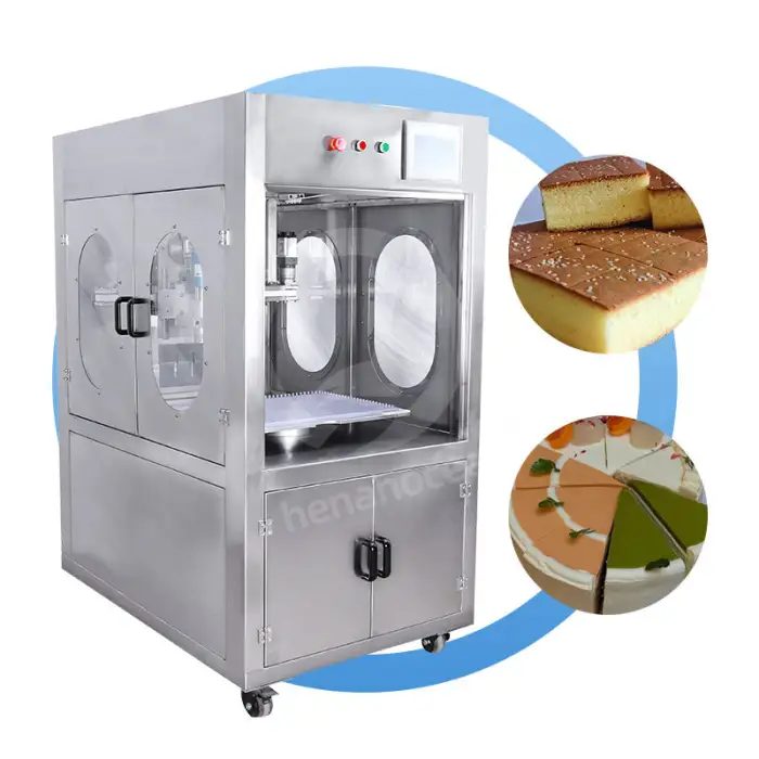 The machine is suitable for various types of cakes, including layered cakes, fondant cakes, and more, ensuring clean and precise cuts.