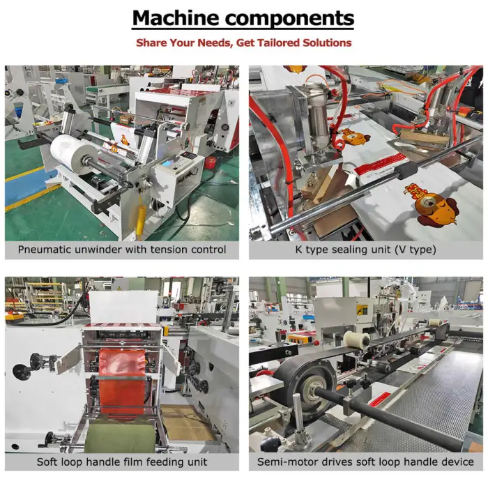 The machine is equipped with advanced technology and precision components that enable high accuracy in bag size and quality during production.
