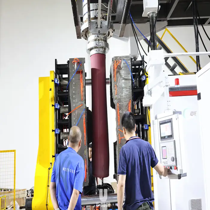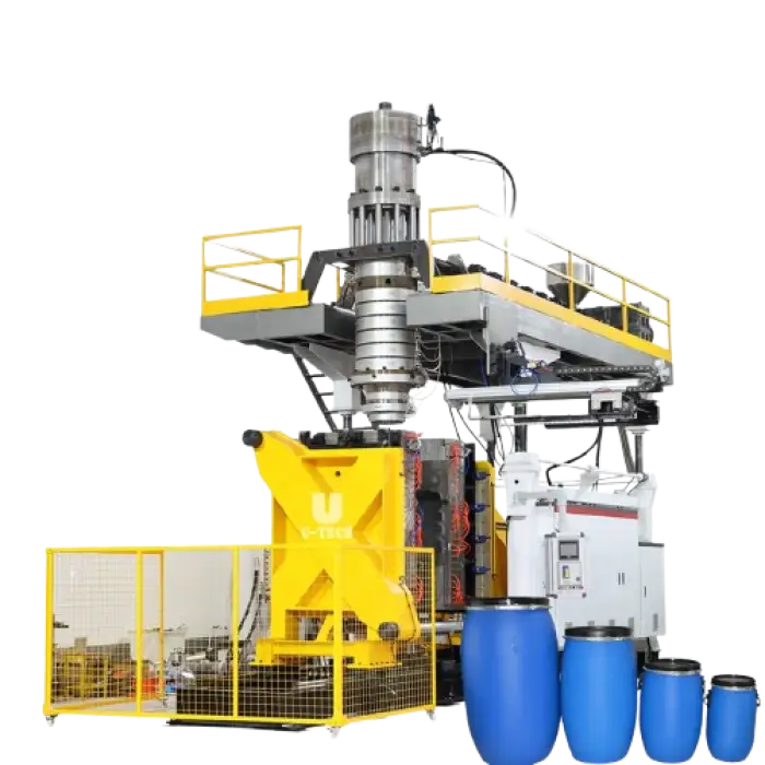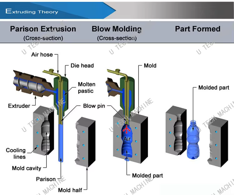 This machine uses extrusion blow molding technology.