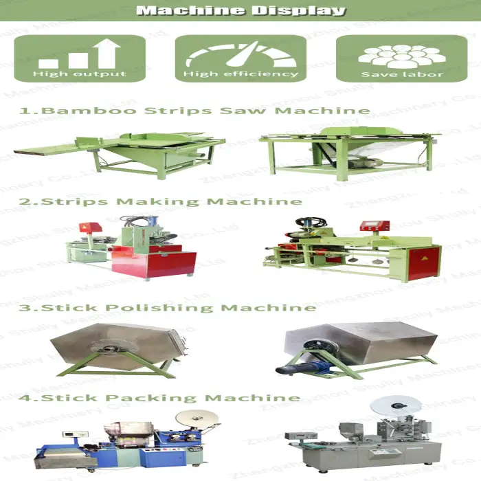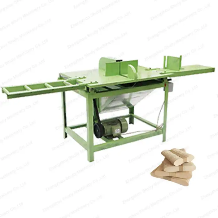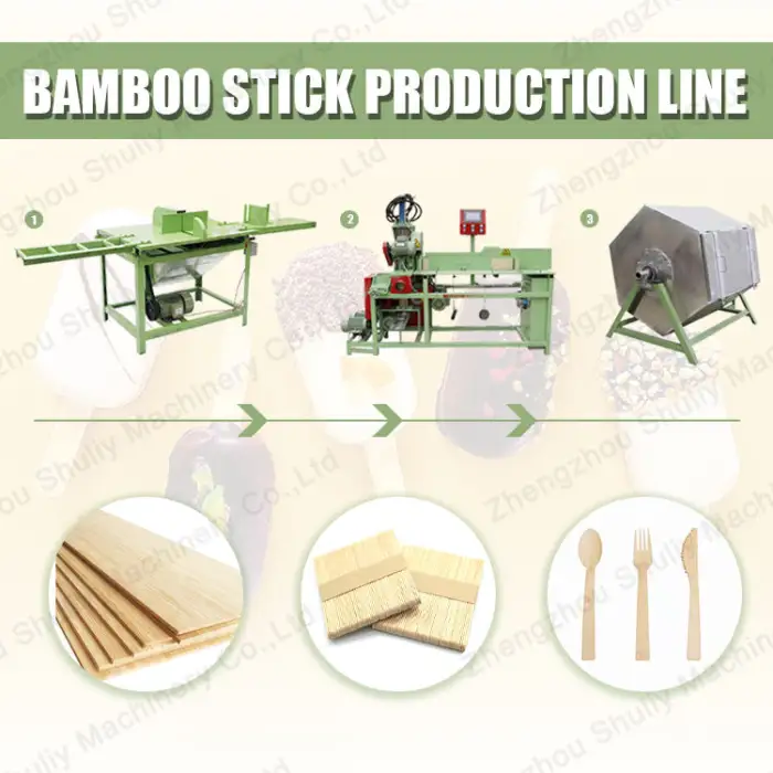 The machine can produce various wooden products including ice cream sticks, fruit knives, forks, and coffee stir sticks.