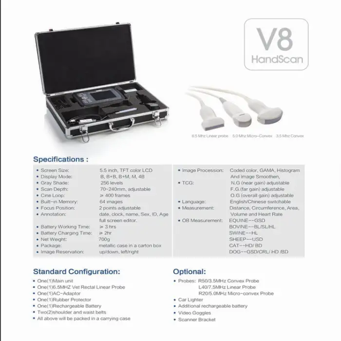 The model number of the Full Digital Veterinary Ultrasound Scanner is XX-V8.