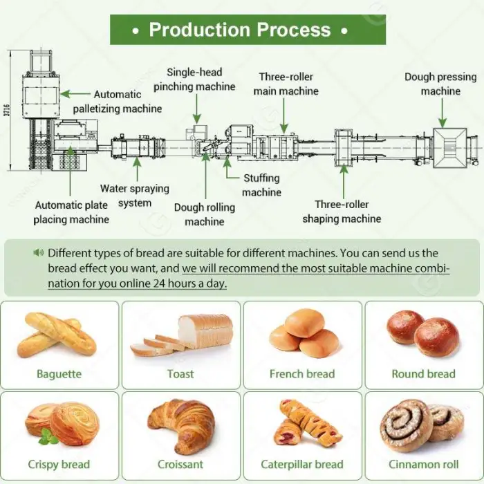 The primary function of this machine is to efficiently produce high-quality bread and pastries, making it ideal for small businesses like bakeries and snack food factories.