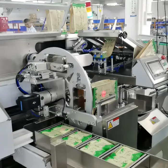 The machine is designed for high-speed operation, allowing quick packaging of toast bread slices.