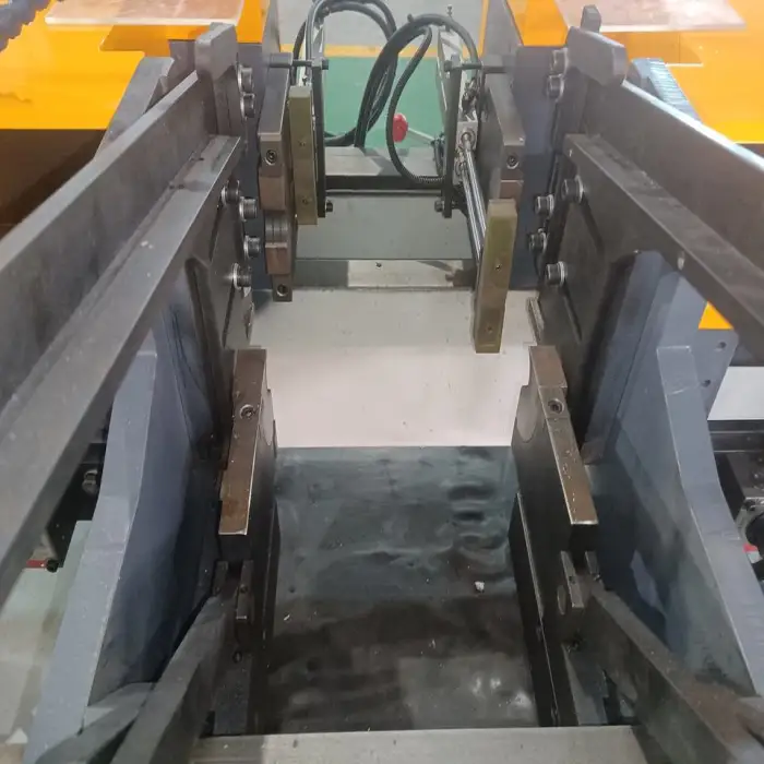 The machine is capable of chamfering inside angles, providing high precision beveling for quality results.