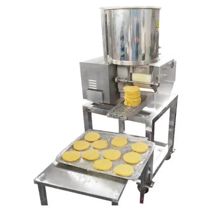 The machine is designed to produce round-shaped patties, but the size may vary depending on the mold used.