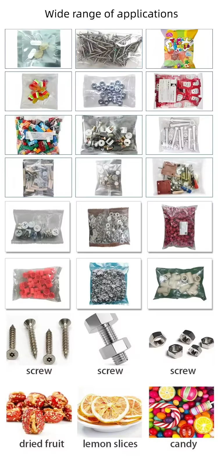 The machine is ideal for packaging candy and snacks, counting golf tees, handling hardware accessories, and other commodities.