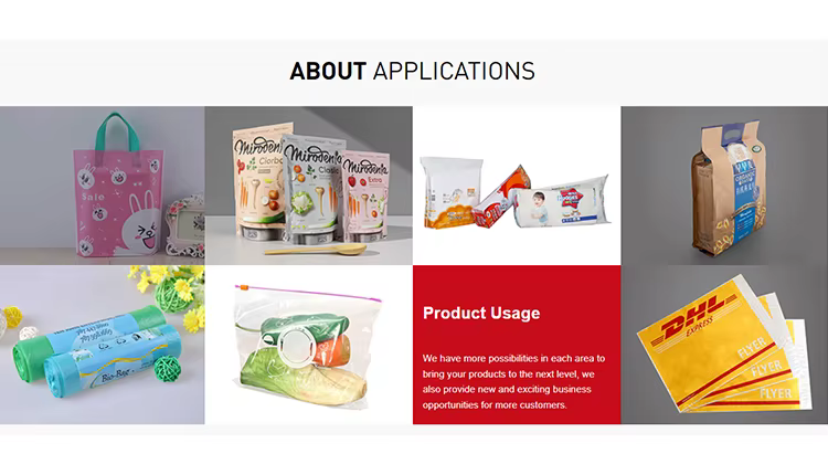 The machine is suitable for producing drawstring bags for retail packaging, courier bags for shipping, diaper bags for personal use, and general-purpose plastic bags.