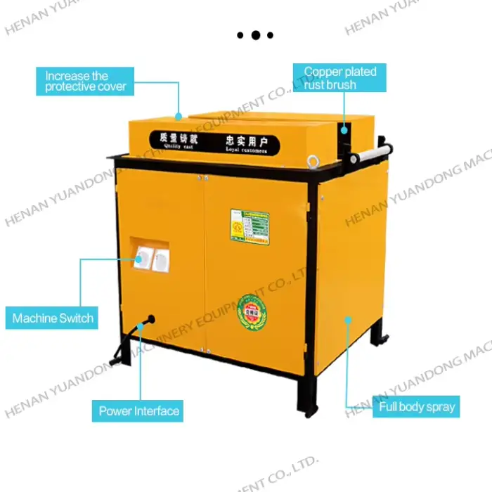 Key selling points include high working efficiency for fast rust removal, automatic operation, customizable voltage options, and robust construction for durability.