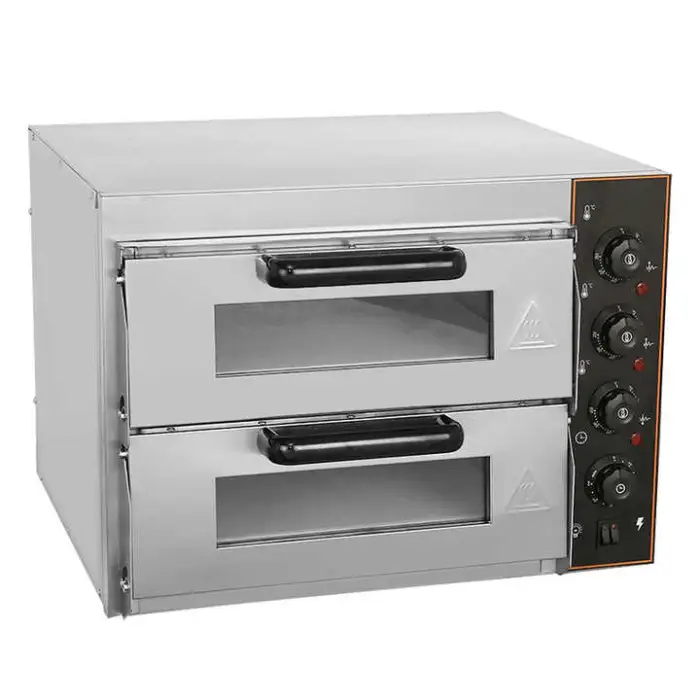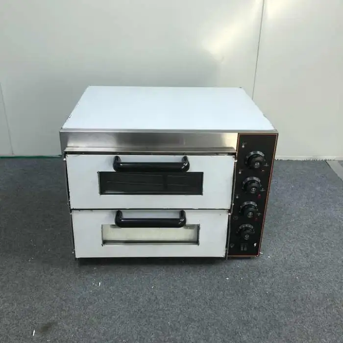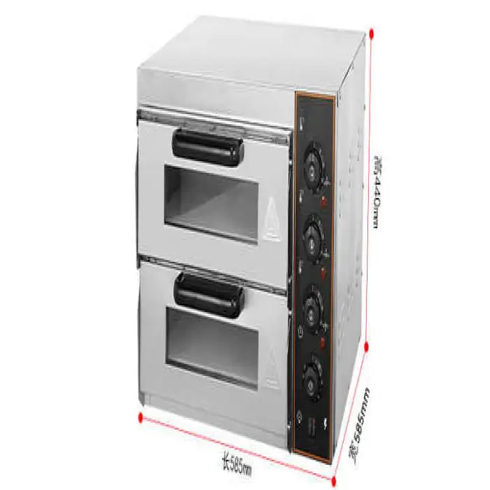 The oven is ideal for commercial pizza stores, snack food factories, bakeries, restaurants, catering services, and outdoor cooking events.