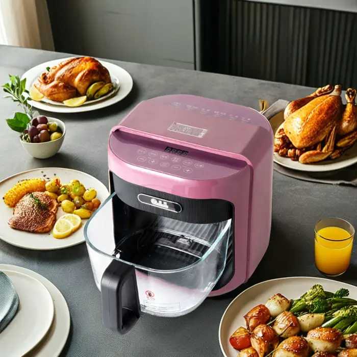 The air fryer uses a 360-degree hot wind method to cook food quickly and evenly.