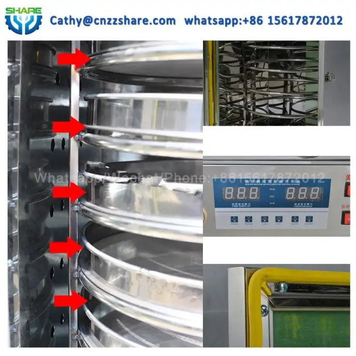 The machine features 6 layers, allowing for increased drying capacity, which makes it suitable for large batches.