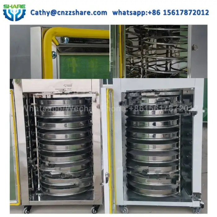 The drying machine is constructed from high-quality stainless steel, ensuring durability and easy maintenance.