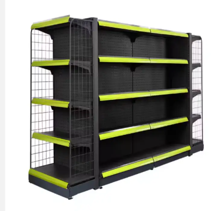 These heavy-duty shelves are suitable for displaying a variety of products including groceries, household items, and seasonal promotions.