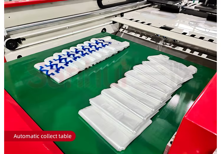 The machine can produce bags at speeds of up to 120 pcs/min or 220 pcs/min, depending on the configuration used.