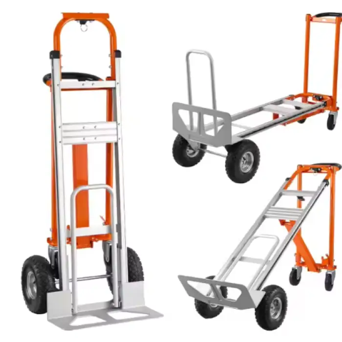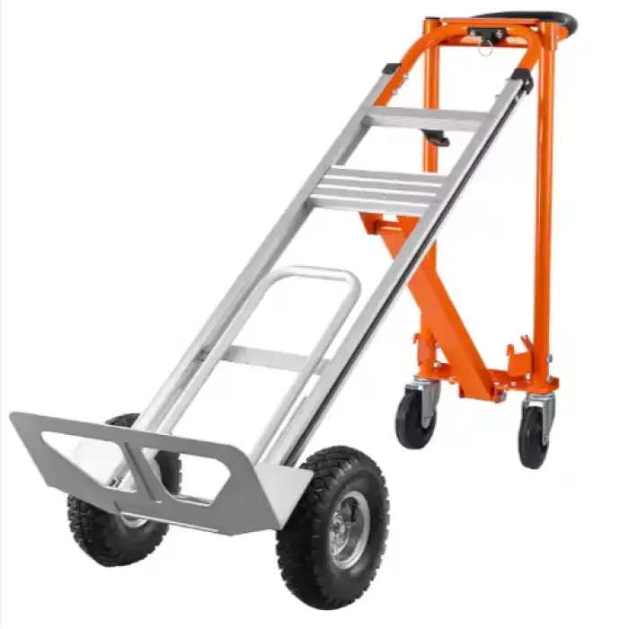 Heavy Duty 1000 Lbs Capacity 4-in-1 Industrial Folding Dolly Cart with 10 " Rubber Wheels Aluminum Hand Truck