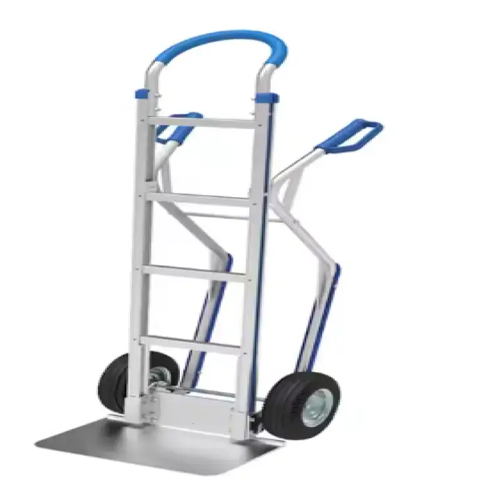 The trolley is constructed from strong aluminum, making it durable for heavy-duty use.
