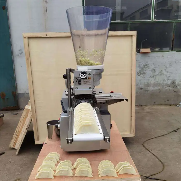 The High Efficiency Japanese Gyoza Maker Machine can make various types of dumplings including gyoza, samosas, and empanadas.