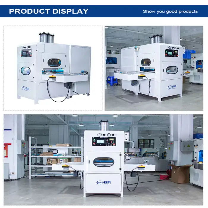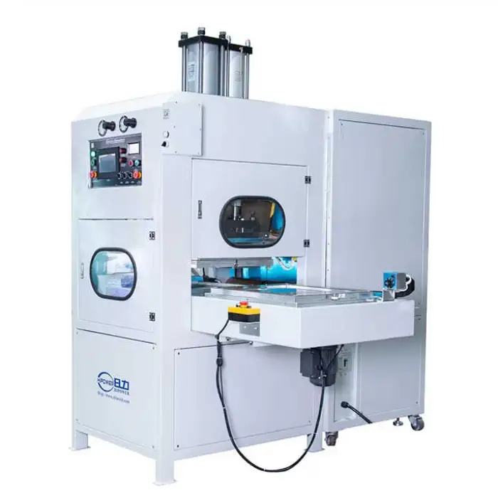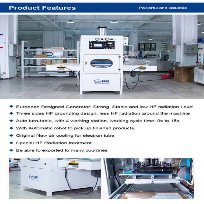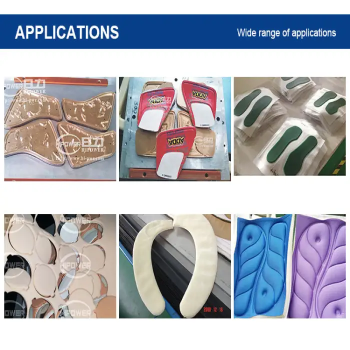 The machine can be used for making insoles for shoes, welding PVC for automobile carpets and tonneau covers, creating durable curtains and baffle boards, fabricating parts from various plastics, and the production of custom automotive interiors.
