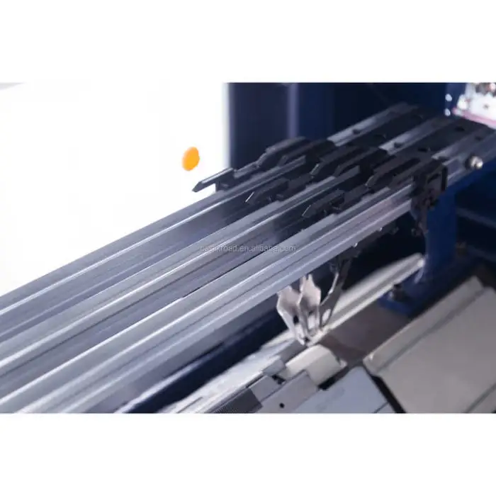 The machine operates at a gauge of 14G, making it suitable for a variety of knitting projects.