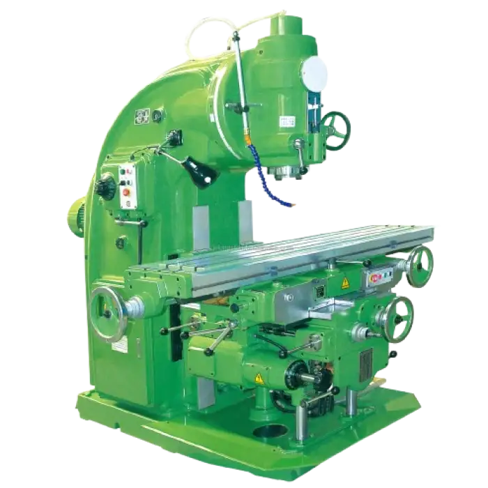 This milling machine is distinguished by its heavy-duty construction, high precision capabilities, and a wide spindle speed range, providing versatility for various tasks.